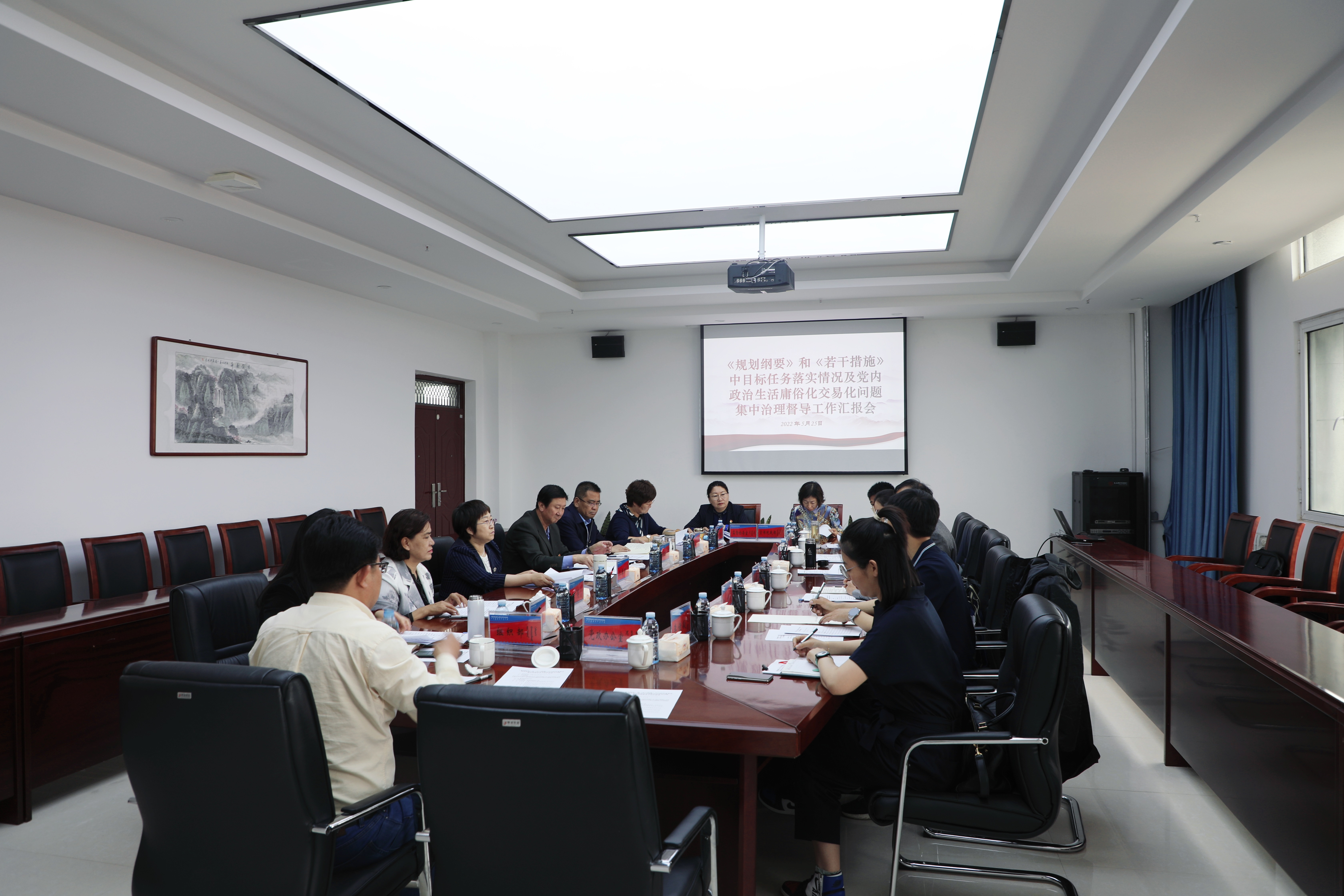 5月25日上午,Beat365在综合楼701会议室召开《规划纲要》和《若干措施》中目标任务落实情况及党内政治生活庸俗化交易化问题集中治理督导工作汇报会。自治区第十督导组组长、内蒙古医科大学党委委员、纪委书记苏振荣一行到会指导。校党委副书记、校长李春晖主持会议,在家校领导及相关部门负责人参加会议。