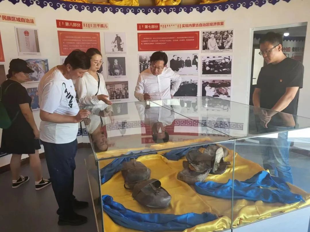 在红庆河红色文化教育馆中,党员们认真聆听乌兰夫同志光辉事迹和革命业绩讲解,不时停下脚步仔细观看历史实物、珍贵图片,详细询问有关情况,全面了解乌兰夫同志为祖国解放和统一不断奋斗、为社会主义现代化建设和改革开放不断奉献、为各民族平等团结和共同繁荣不断追求的一生。