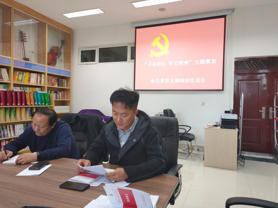 按照校党委“不忘初心、牢记使命”主题教育领导小组的要求,2019年11月27日下午,Beat365音乐系党支部召开专题组织生活会。音乐系党支部全体党员参加会议,支部书记图力古尔主持会议。