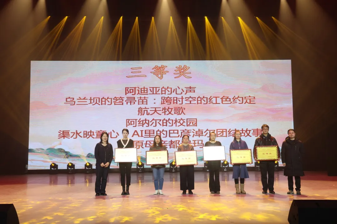 三等奖作品(6部):《阿迪亚的心声》、《乌兰坝的笤帚苗:跨时空的红色约定》、《航天牧歌》、《阿纳尔的校园》、《渠水映童心:AI里的巴彦淖尔团结故事》、《草原母亲都贵玛》。