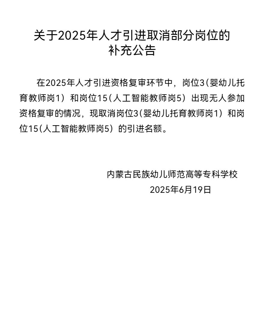 关于2025年人才引进取消部分岗位的补充公告