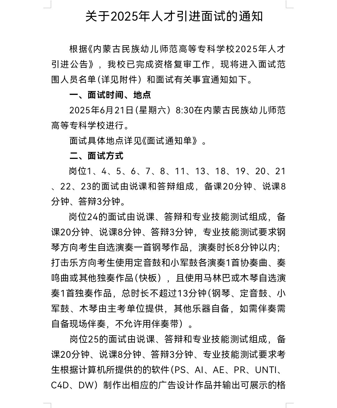 关于2025年人才引进面试的通知