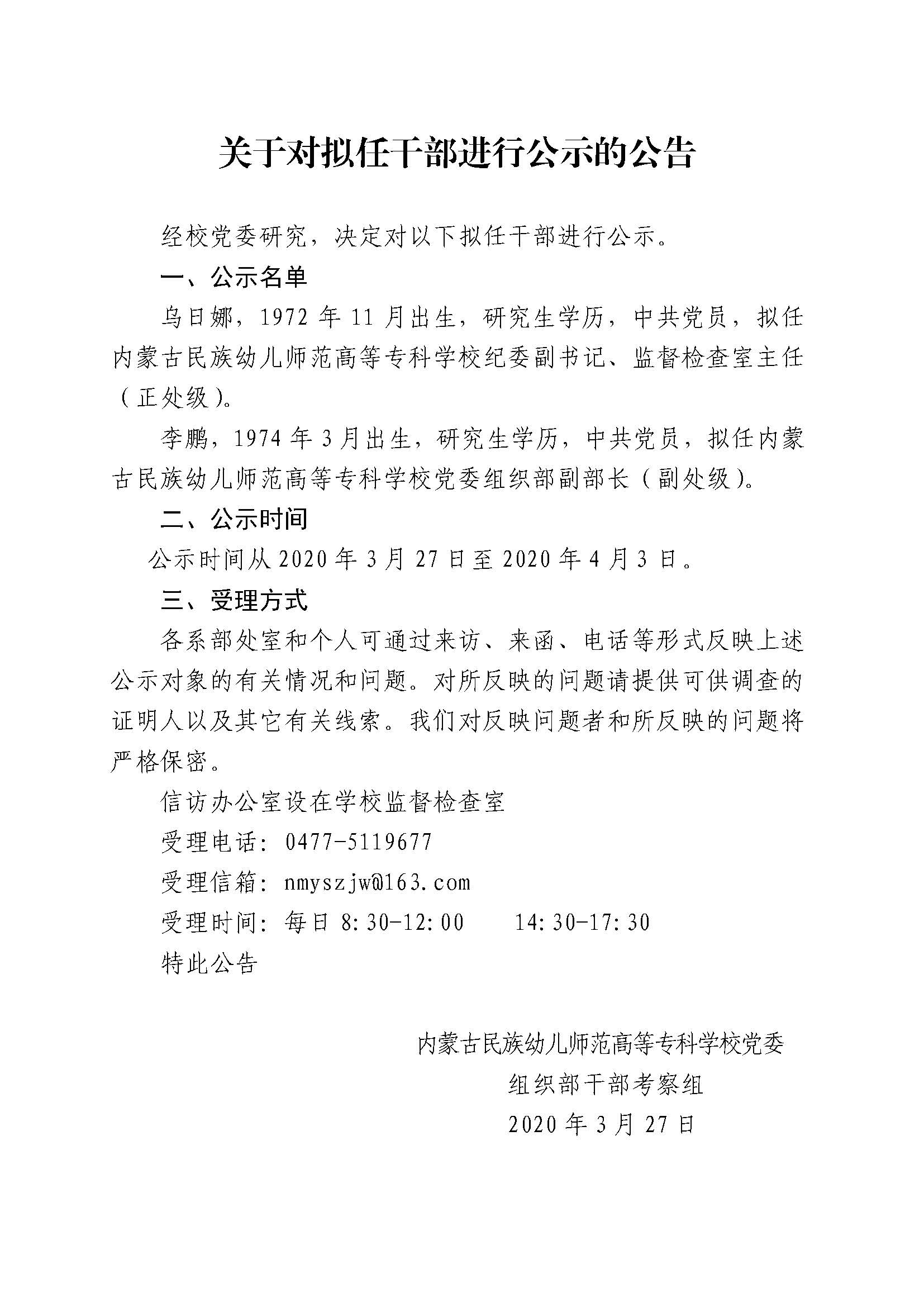 拟任干部公示