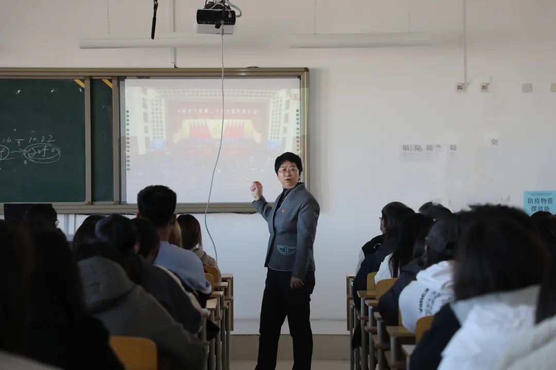 李春晖将学习贯彻党的二十大精神与形势政策讲座有机结合,用学生们喜欢的语言风格,引入大量事例和故事,围绕“成就”“思想”“使命”三个主题词,从大会概况、党的二十大报告主要内容、未来发展蓝图与使命担当等三个方面展开讲授,重点深入讲解了“五个牢牢把握”、国家安全以及青年人责任与担当等内容。引导学生更好地理解党的二十大主题,学习党的二十大报告内容,深刻领悟党的二十大精神的内涵实质。
