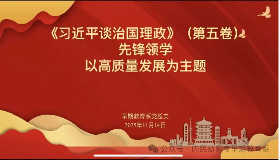 为持续深化学习贯彻习近平新时代中国特色社会主义思想,11月14日下午,早期教育党总支组织全体党员召开《习近平谈治国理政》第五卷专题学习先锋领学活动,围绕“高质量发展”与“习近平总书记交给内蒙古的五大任务”开展学习。