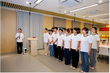 在颁发结业证书后,仪式特别设置“全体宣誓”环节。全体学生在吴雨华园长的带领下,庄严宣誓:“严格贯彻托育从业人员职业行为准则,坚定政治方向,落实托育工作决策部署;自觉爱国守法,依法依规开展托育服务;传播优秀文化,培养婴幼儿良好品行和习惯!”铿锵誓言回荡会场,彰显出新一代托育人的职业信念。