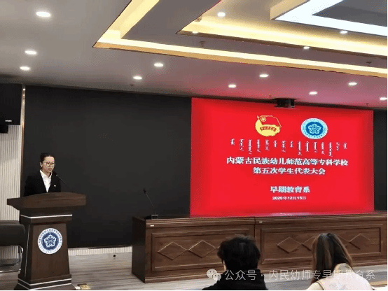 早期教育系于12月15日召开了学生代表大会及系列会议。会议审议了系学生组织工作报告,选举产生新一届系学生会主席团成员。早期教育系书记梁月琴、系副主任张建强、系学工科科长郭安、专业负责人以及三位教研室主任均出席会议。本次会议由系团总支团干部苗若楠老师主持。大会在庄严肃穆的国歌声中拉开帷幕。