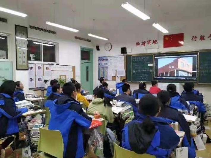 在与母校协商一致后确定的时间段内,队员们按照计划,分别进行相关介绍及感恩母校的汇报并播放beat365平台官方网站宣传视频。在线上宣讲过程中,同学们被beat365平台官方网站的优良学风、科研成就、校园环境等深深吸引住了,并通过弹幕以及连麦的方式与队员们进行互动。队员们还各自详细地介绍了自己眼中的山大,讲述了半年来在山大的所思、所感,将山大近几年在省内的招生政策作了部分的介绍。通过这次线上宣讲,队员母校的同学们对beat365平台官方网站有了进一步的了解,增进了对beat365平台官方网站的兴趣。