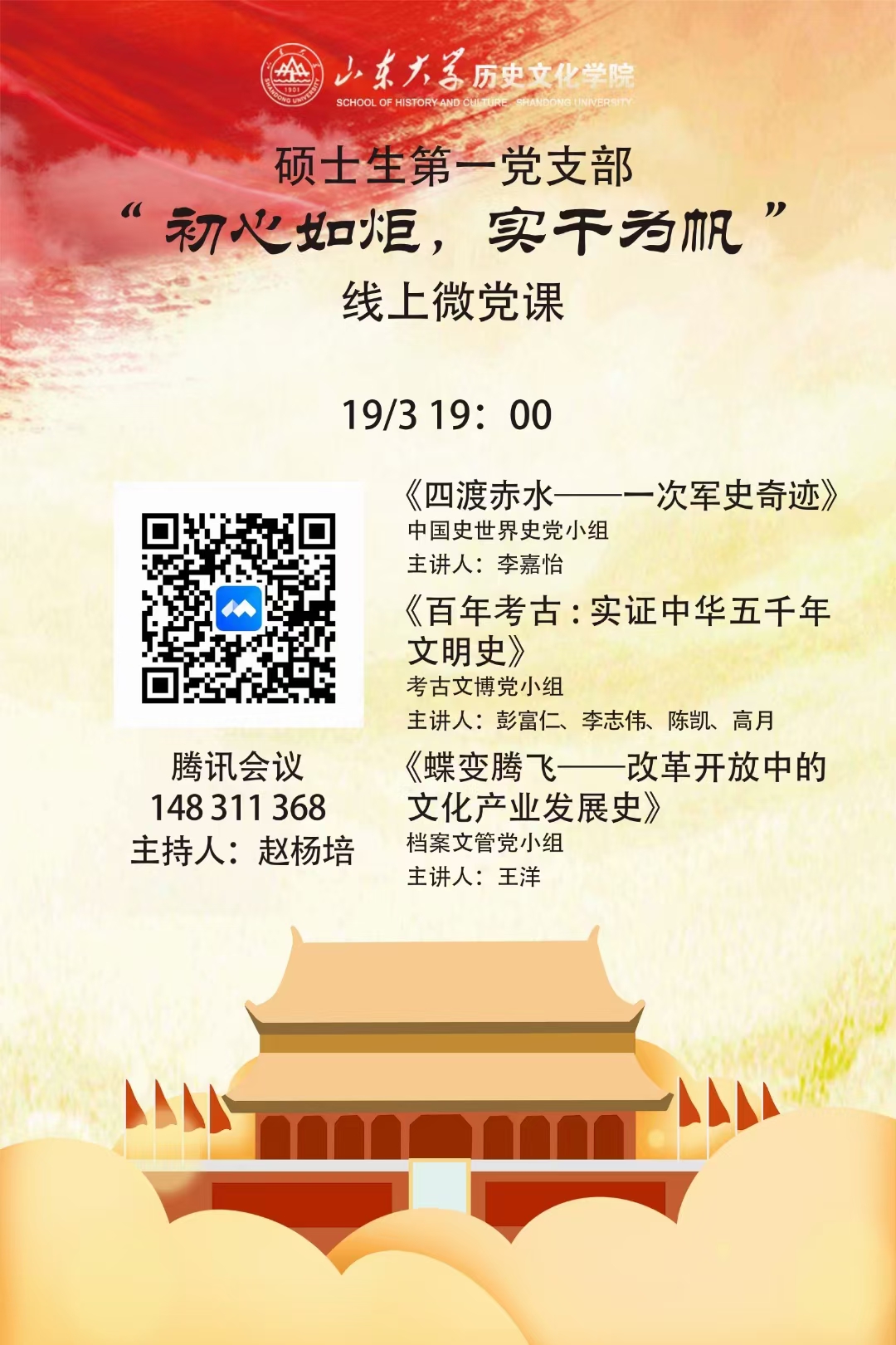 为贯彻落实习近平总书记关于党史学习教育的重要讲话精神,对标中央关于开展党史学习教育动员部署会议精神,真正做到“学史明理、学史增信、学史崇德、学史力行”,历史文化学院硕士生第一支部开展“初心如炬,实干为帆”系列微党课活动,学党史、悟思想、办实事、开新局。