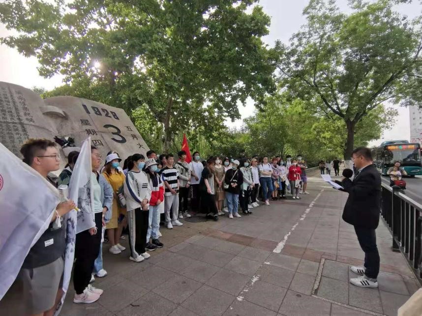 近日,历史文化学院组织开展学生徒步缅怀活动,前往济南“五三惨案”纪念碑开展党史学习教育,致敬革命先烈。本次活动由辅导员曹明明、徐伯谦带队,130余名本、硕、博学生共同参与。