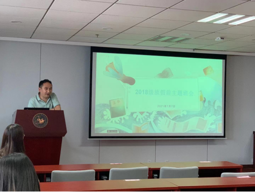 为推动“三全育人”综合改革试点工作,发挥融入式、嵌入式、渗入式的协同育人效应,引导学生安全平稳度过暑假,7月7日下午,历史文化学院党委副书记、2018级辅导员张伟和辅导员朱嘉铭面向2018级全体本科生召开暑期安全教育主题班会。