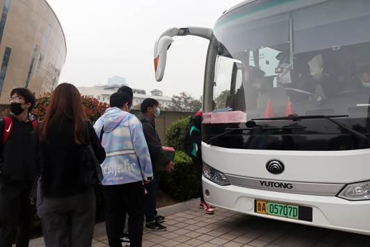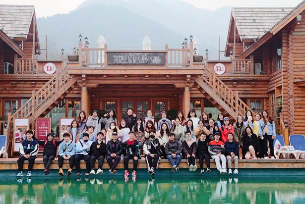 早上七时,同学们按时在体育馆门前集合,登上大巴,开始了一天的课程实践活动。一个多小时的车程后,大家顺利抵达九如山瀑布群风景区,经过简单休整,同学们坐上观光车,跟随景区导游一同体验了多处特色民宿和网红打卡点的设计开发情况。