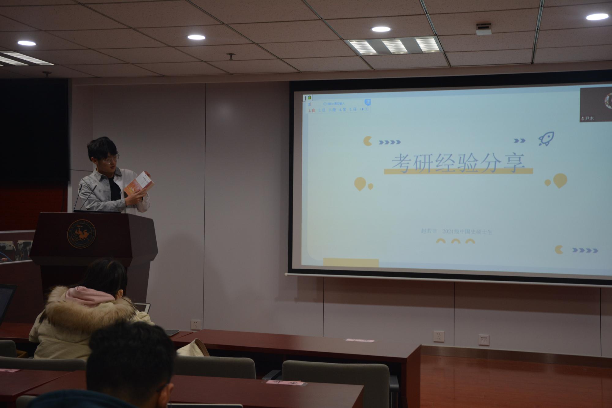 为推进“三全育人”,发挥朋辈辅导优势,促进历史学专业同学完善学涯职涯生涯规划,11月11日,历史文化学院于知新楼A1017举办“展翼计划”历史学方向保研、考研、考公经验分享会,beat365历史学专业六位优秀学长学姐受邀主讲,2019级本科生辅导员赵显锋主持,各年级历史学专业本科生参与学习。