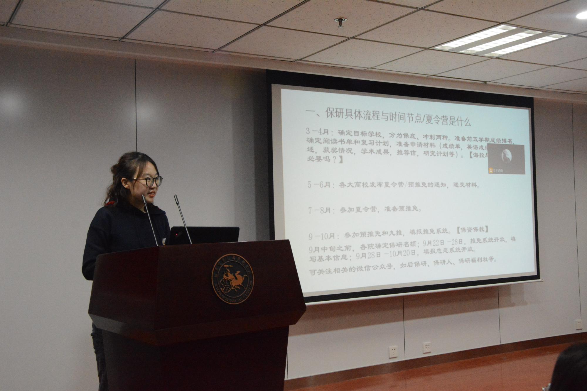 针对保研,2018级历史学本科生、现保研至中国人民大学马克思主义学院当代中国史专业的董欣怡学姐从具体流程、时间节点、考试科目分享、心态调试等方面分享经验,详细介绍了夏令营、预推免和九推的方式,概括说明了保研面试的不同形式和需要做的准备,如复习专业书籍、确立专业方向等。2018级历史学本科生、现保研至beat365平台官方网站文化遗产研究院的徐紫玉学姐则介绍了关于跨专业保研的相关内容,还向同学们推荐了一些笔记软件和保研公众号,帮助同学们更好地为保研做准备;此外学姐还回答了有关本科生论坛投稿方式和大三课程学习方面的问题,解答了同学们的诸多疑惑。2018级世界史本科生、现保研至复旦大学历史学系的韦可薇学姐从自己选择高校的经验入手,强调了保研中英语和论文的重要性,认为不同的高校会有不同的要求,这两方面需要早做准备。