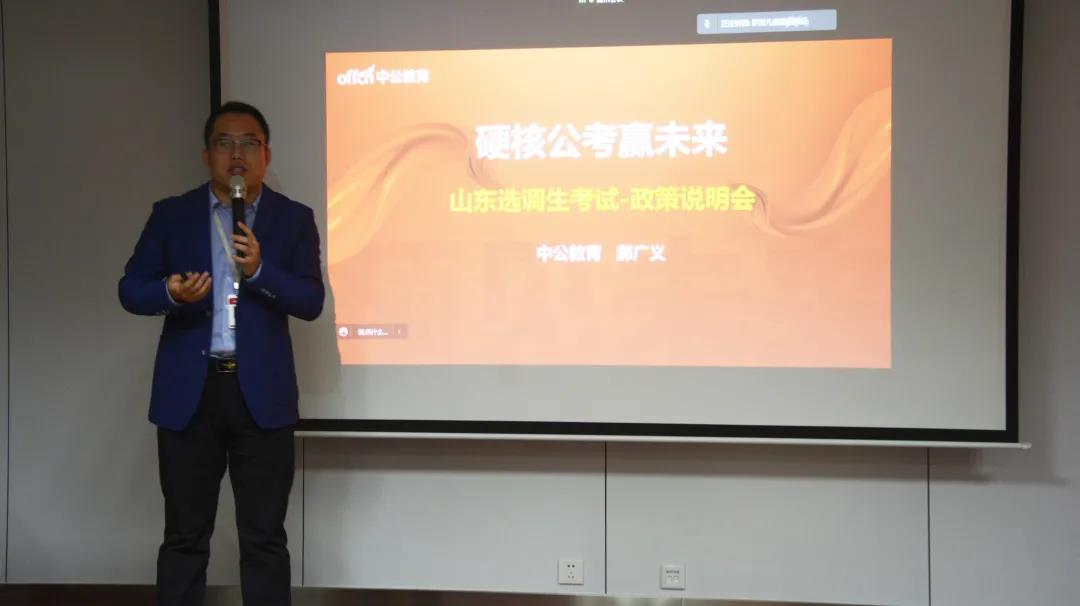 在首场讲座中,中公教育郝广义老师从选调政策串讲、考试备考说明以及个性答疑解惑三个部分展开讲解。在选点政策板块,郝广义从选调生和公务员两场考试的对比分析入手,介绍了公务员考试的整体形势、考试时间及相关内容、招考比例等,并对如何选岗提出系列建议。在考试备考说明板块,分析了笔试试卷的结构,针对行测、申论等重要部分作出详细讲解并提出相关备考建议。同时,他强调了坚强的心理素质和良好的表达能力在面试过程中的重要性。在答疑阶段,郝广义与在场学生展开积极互动交流,并为大家分享了备考阅读书目和材料,鼓励同学们不畏艰险、认真备考。