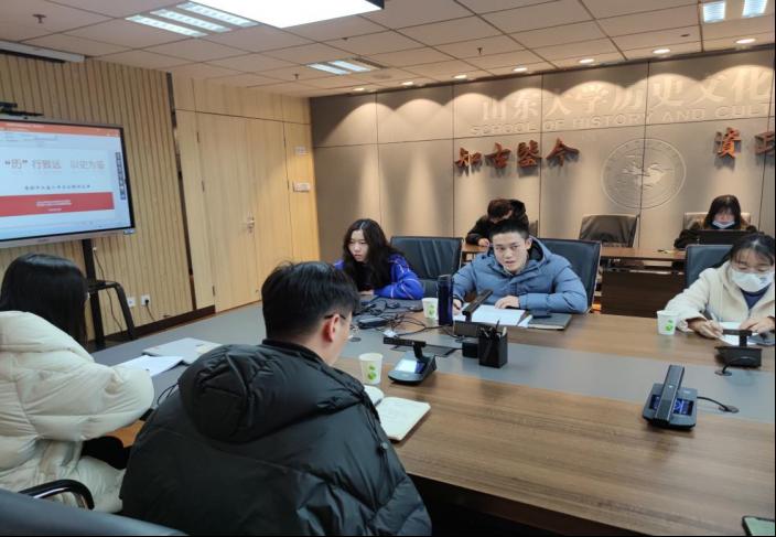 交流环节,赵显锋表示我们要将理论学习的成果切实转化为工作动力和实际成效,在学生党员中增强“四个意识”、坚定“四个自信”、做到“两个维护”,坚持历史学科知古鉴今,资政育人的特殊作用,充分发挥基层党支部的战斗堡垒作用和共产党员的先锋模范作用,为全面建设社会主义现代化强国,实现中华民族伟大复兴的宏伟梦想贡献山大的青春力量。本科生党支部陈洋同学结合自身学习和社会工作的实际情况,表示在今后的学习生活中要注重总结经验教训、坚持批评和自我批评,在理论学习的基础上加强社会实践,不断提升自身能力和综合素养。