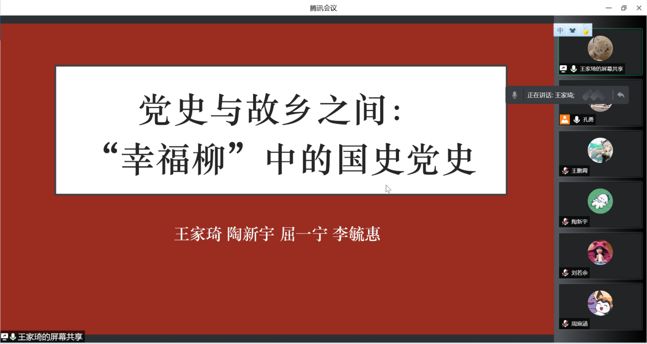 近日,历史学系第二党支部与2020级历史强基团支部组织开展“党史中的故乡,故乡中的党史”党团互助活动。中国近现代史教研室教师宋弘、许存健担任活动嘉宾。活动由2020级历史强基班班主任孔勇主持。