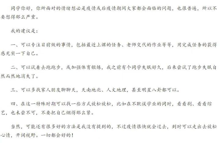 活动采取“心理信箱”的形式进行,由同学们自愿选择匿名或实名向指定邮箱发送生活、心理、学习等方面存在的问题和疑惑,经团支部收集整理后统一反馈给教工党支部,由老师们有针对性地进行答疑解惑,解决学生问题,拉近师生关系,强化党团共建。