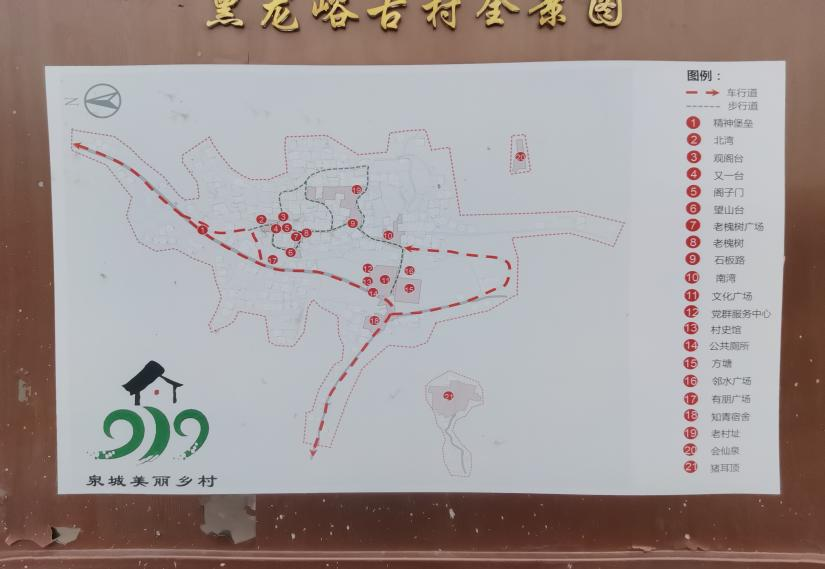 在实践活动开展中,调研团首先通过村地图了解当地的旅游资源及路线,并根据路线指示一一探访了黑龙峪村的各突出景点,并进行适当记录。