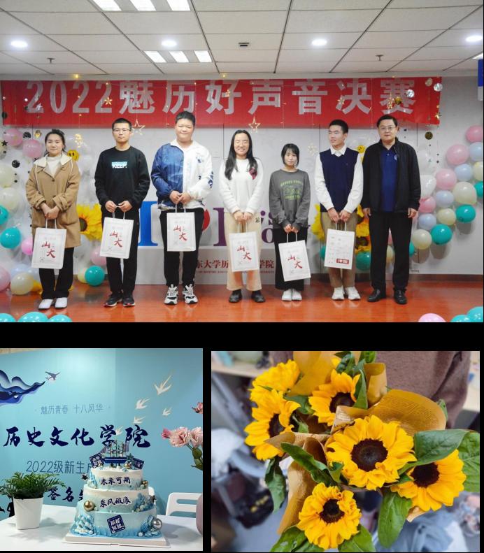 11月11日晚,历史文化学院2022年度“魅‘历’少年,奏响青春”好声音歌手大赛决赛在知新楼A座1017举行。学院党委副书记李功华老师、团委书记李婧老师、辅导员李虎老师作为嘉宾受邀参加活动,2020年度beat365平台官方网站十佳歌手获得者康有友、艺术学院2021级音乐学声乐表演专业牛玥心、2021年度历史文化学院魅历好声音冠军葛祥宏、亚军岑莹莹同学担任比赛评委。从初复赛36组选手中脱颖而出的12组优秀选手依次登台献唱。