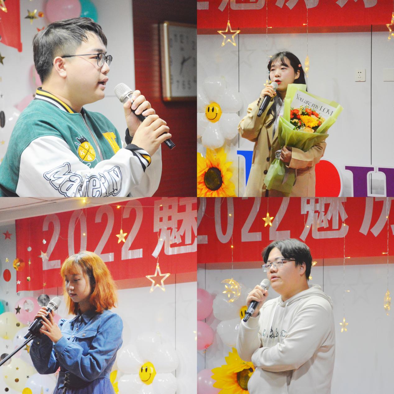 比赛过程中,我们设计了新生成人礼环节。李功华老师为2022级新生中即将迎来18岁生日的6名同学颁发了成人礼赠书,并勉励大家心怀感恩,勇担时代责任;志存高远,踔厉奋勇向前。全体2022级新生收到了学院为大家准备了蛋糕和鲜花,感受到了来自学院大家庭的温暖与感动。